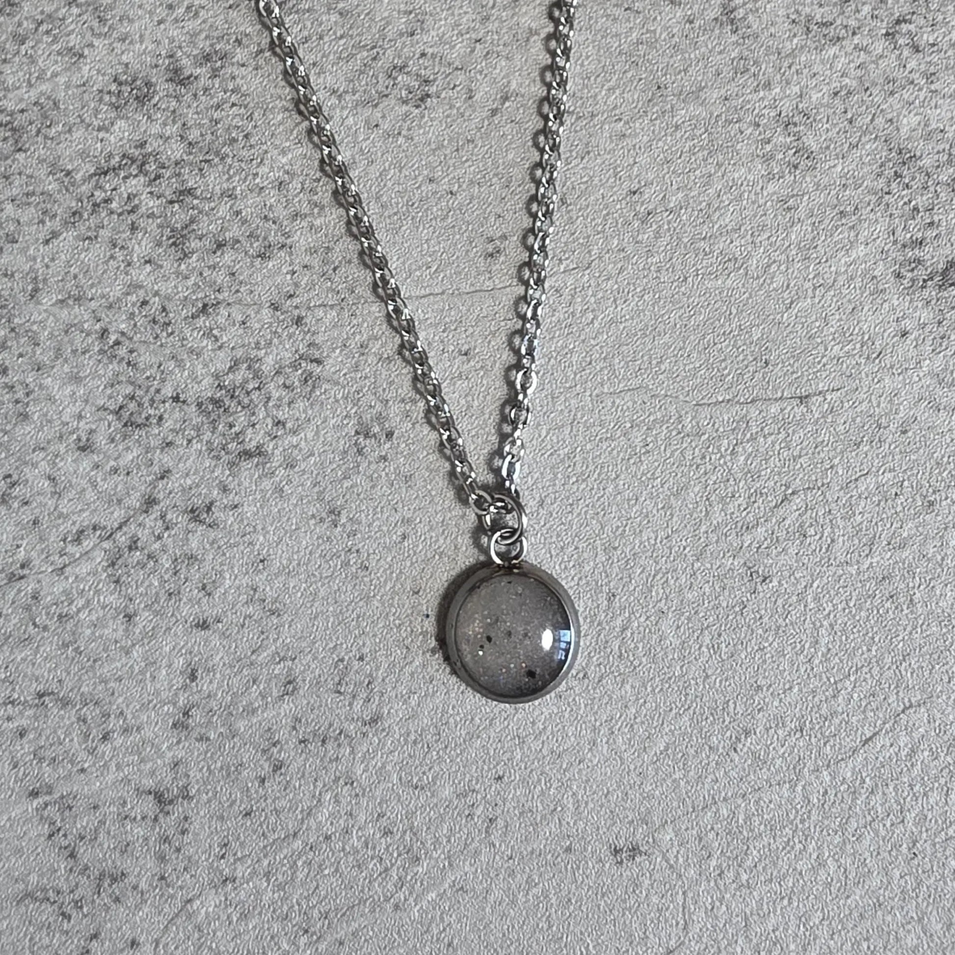 • UK Grade Stainless Steel necklace with hand blown Lunar Dust Stone. Our Moon Dust is not loose in the pendant. It is blown into the pendants stone so you will never lose it.