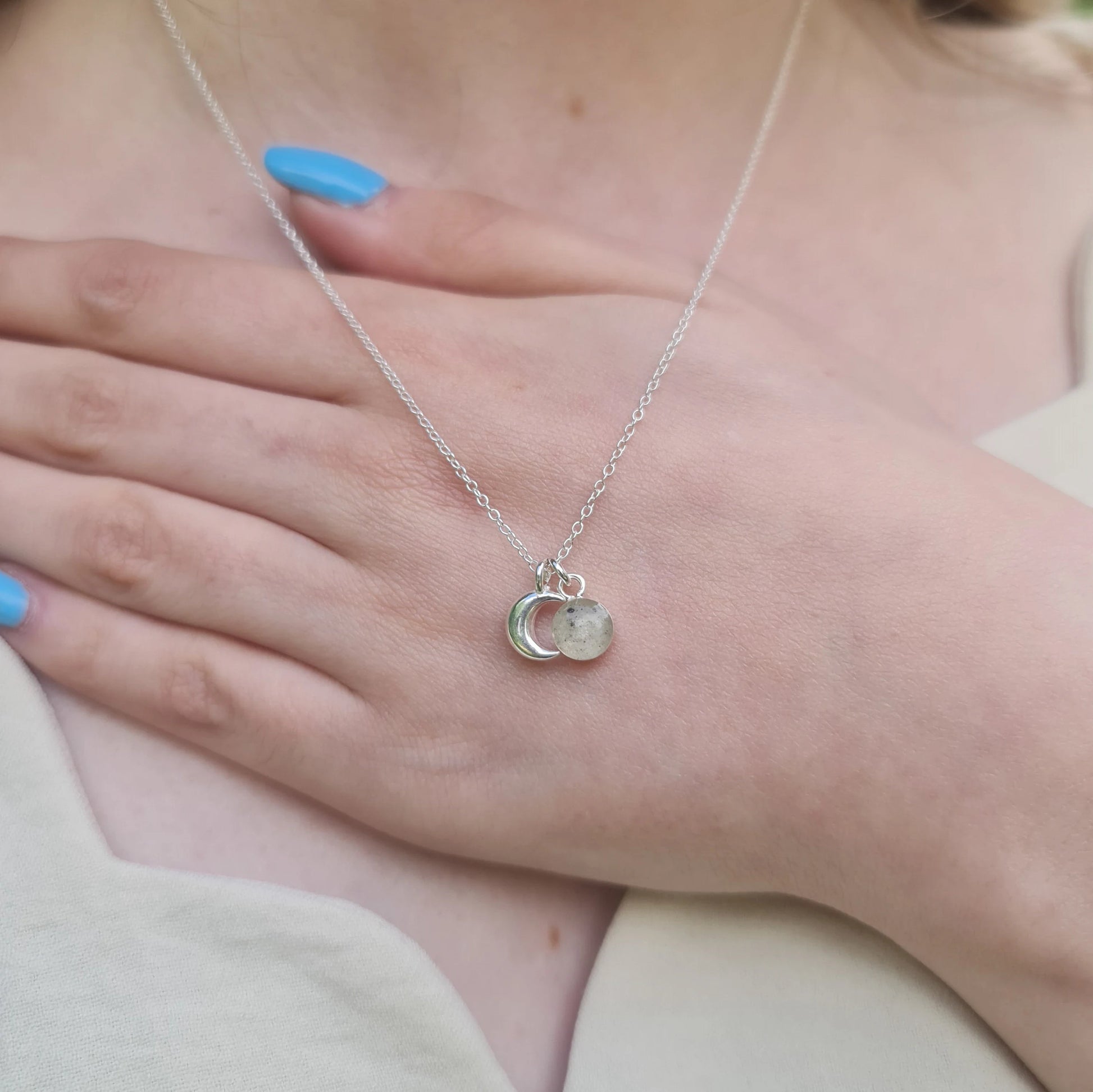 • UK Grade Sterling Silver necklace with hand-blown Lunar Dust Stone. Our Moon Dust is not loose in the pendant. It is blown into the pendant stone so you will never lose it.